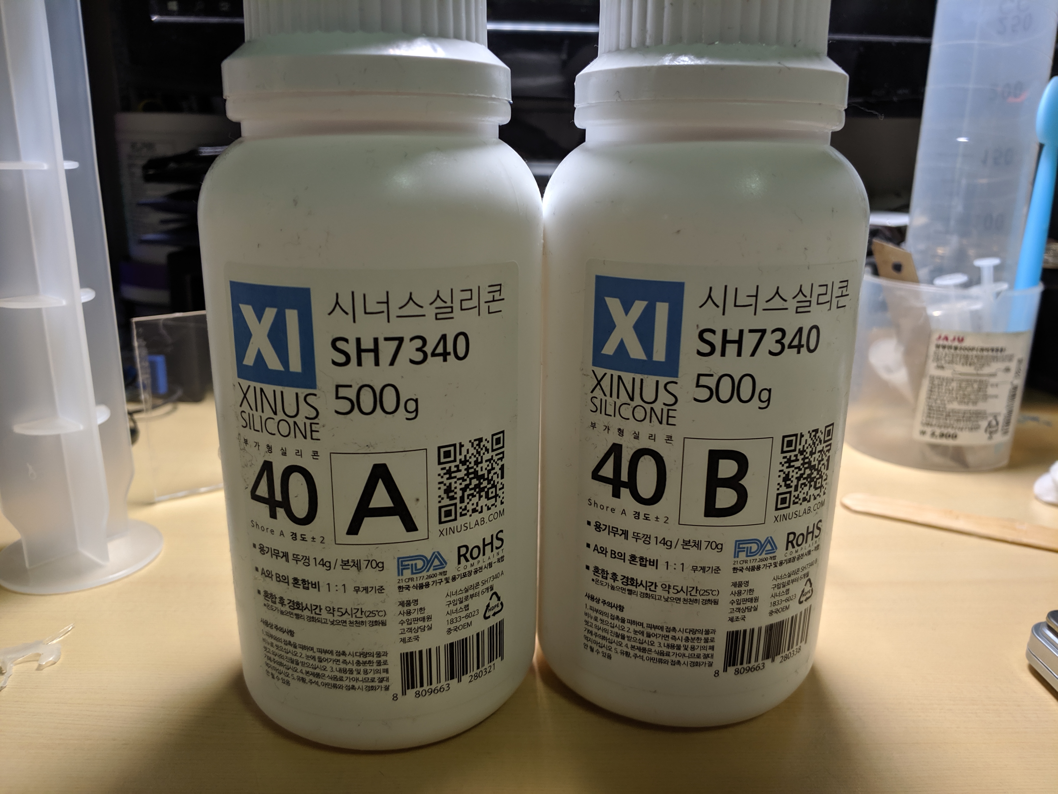 부가형(1대1비율로 섞은 시리콘) 경도 20짜리와 40짜리를 사용했는데