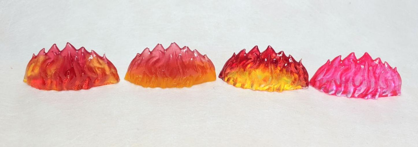 2. 1번과 동일하게 하는데 빨간레진붓고 건조, 주황레진 붓고 건조, 마지막으로 노란 레진을 붓고 건조