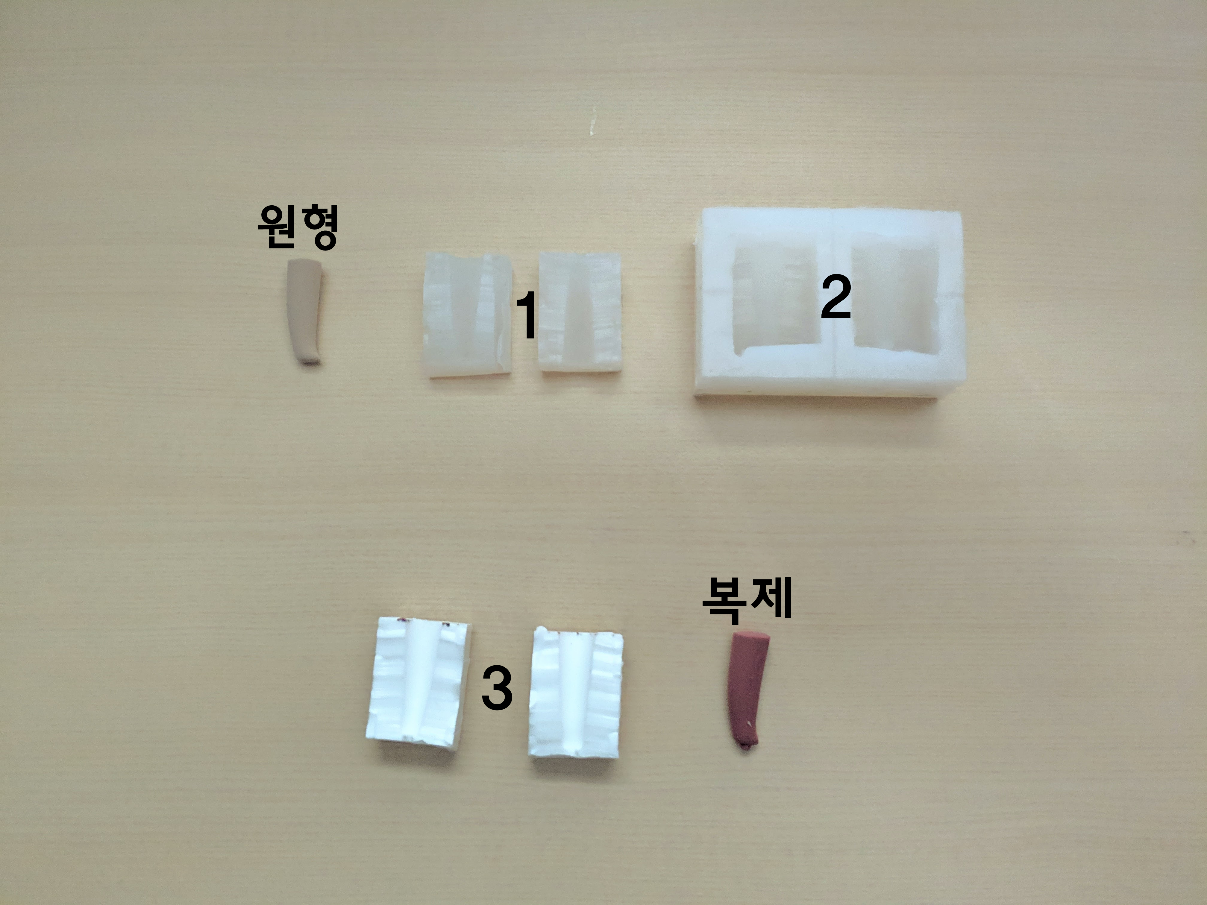 이것을 이용해 1번을 레진으로 복제 할 수 있는 실리콘 몰드는 제작하는것입니다